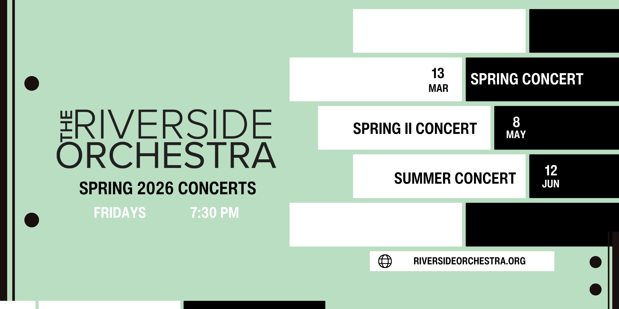 We’d appreciate you considering a suggested donation of a concert ticket price of $30 to support The Riverside Orchestra.