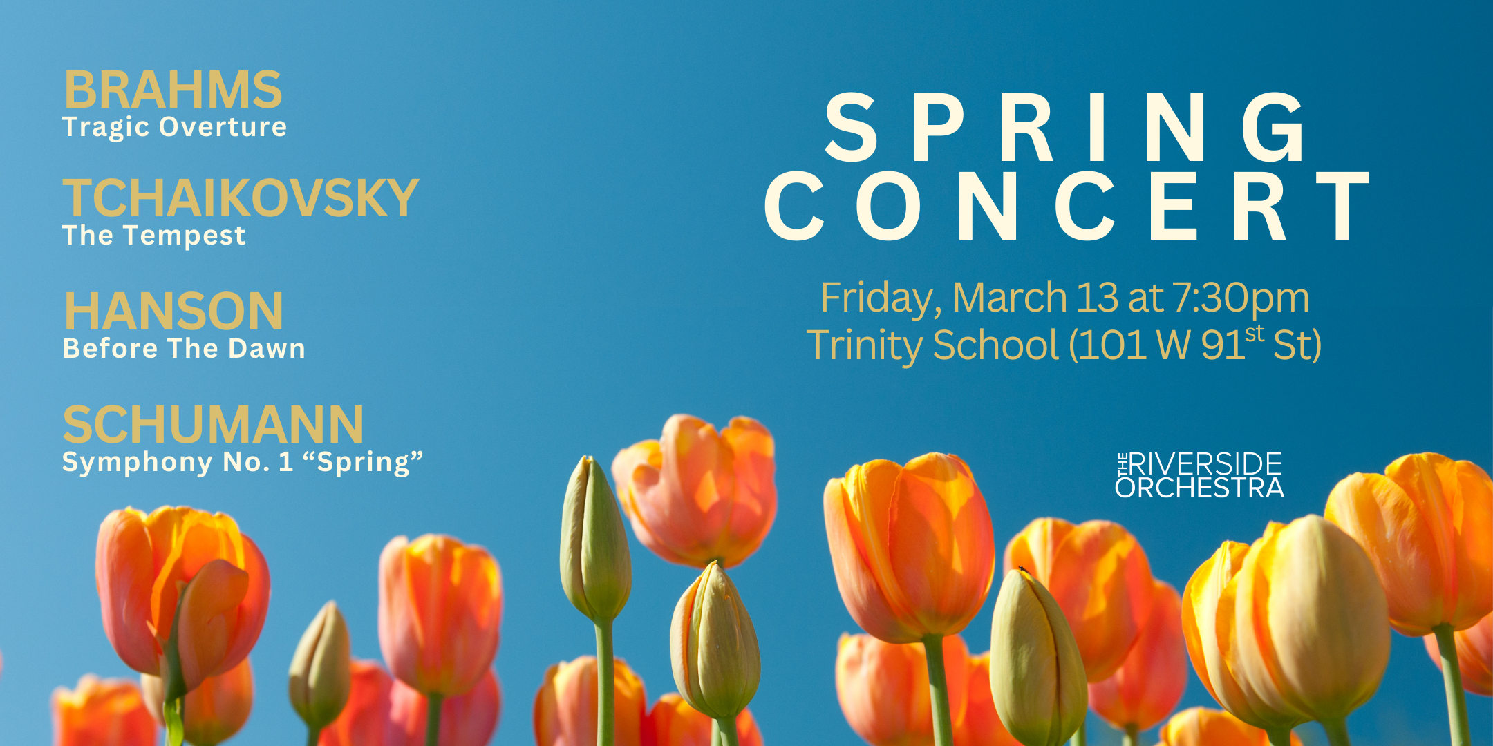 March 13 Spring Concert: Brahms: Tragic Overture; Tchaikovsky: Tempest-Fantasy; Hanson: Before the Dawn; Schumann 1, “Spring”